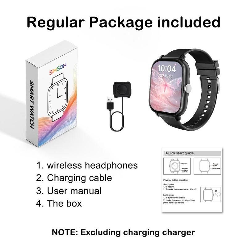 • This Multifunctional Wireless Touchscreen Smartwatch is a versatile gadget that combines style and functionality. Its sleek design sits comfortably on your wrist while offering a wide range of fitness and health tracking capabilities. The touchscreen interface is intuitive and user-friendly, allowing you to quickly switch between different modes such as workout tracking, where it records activities like running, cycling, and swimming with precision. Additionally, it keeps a close eye on your health metrics including blood oxygen levels and stress levels, providing you with valuable insights to improve your overall well-being.